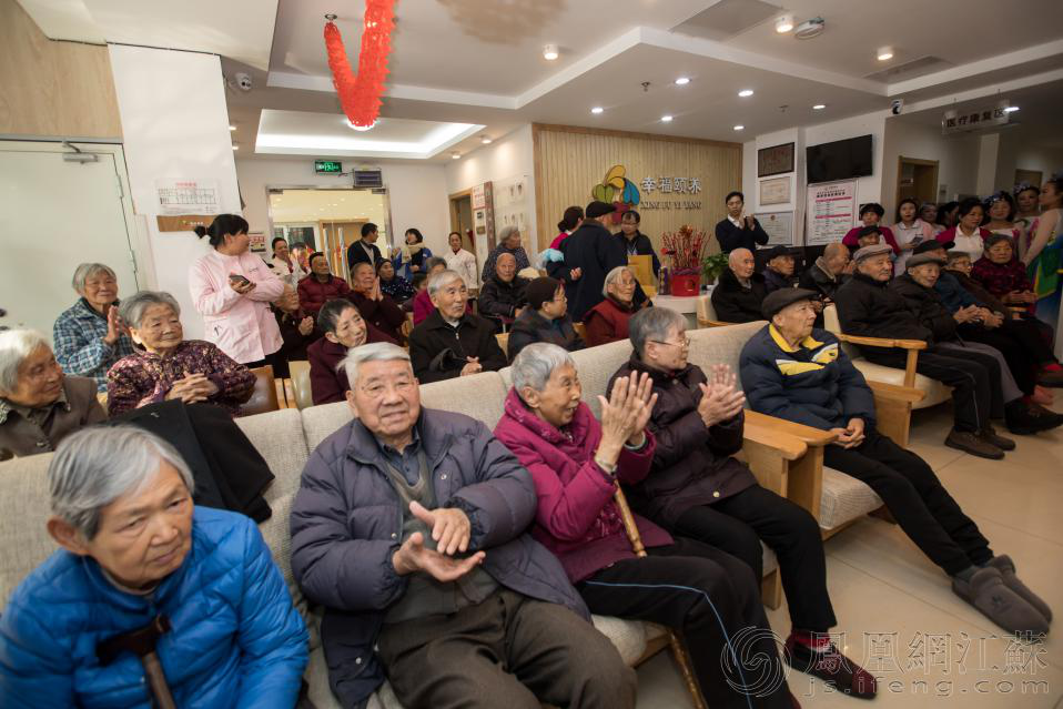 下午兩點,幸福頤養(yǎng)院里的老人陸陸續(xù)續(xù)來到一樓,等待文藝演出的開始。舞蹈、走秀、薩克斯四重奏等節(jié)目輪番上演,不時博得陣陣掌聲和歡呼聲。